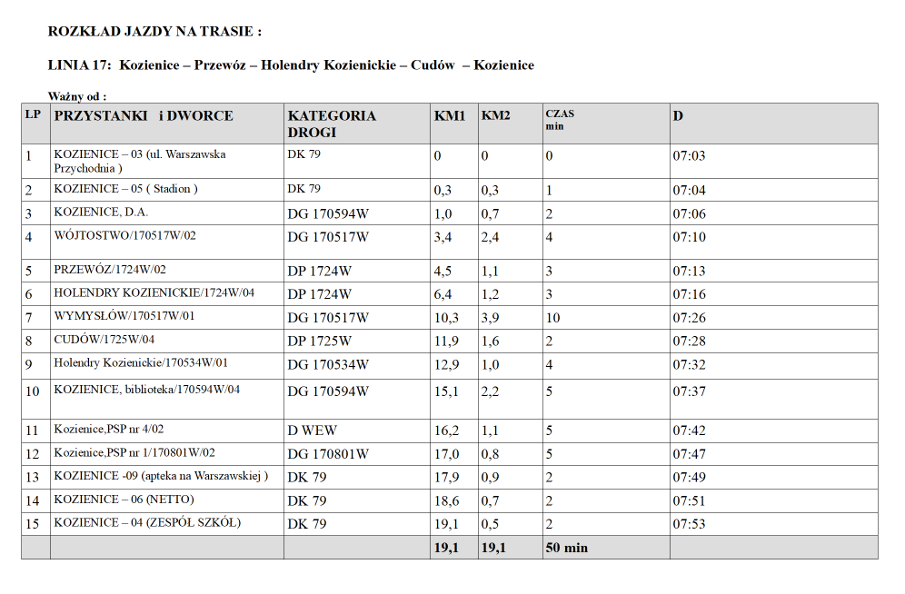 Prosimy o zapoznanie się z aktualnym rozkładem jazdy.