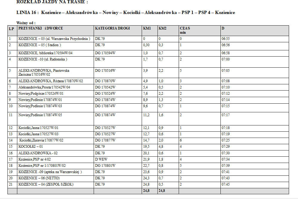 Ze względu na potrzeby dowozu mieszkańców trasa została poszerzona o nowe przystanki.