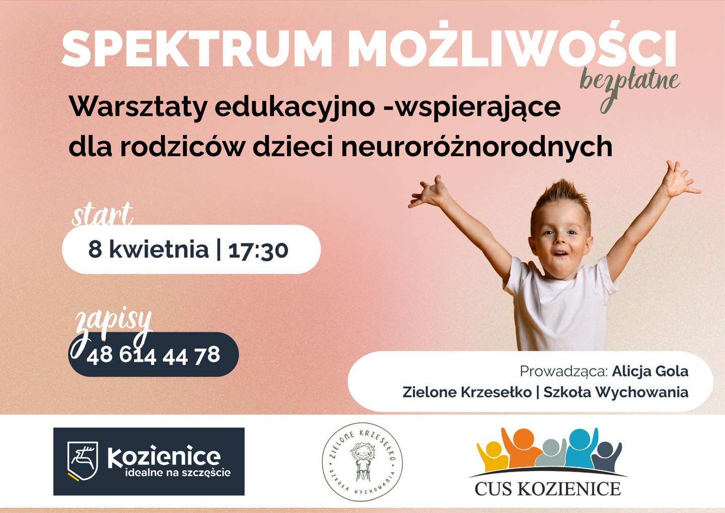 Centrum Usług Społecznych w Kozienicach wraz z Zielone Krzesełko – Szkoła Wychowania zapraszają na bezpłatny cykl warsztatów dla rodziców i opiekunów dzieci neuroróżnorodnych .